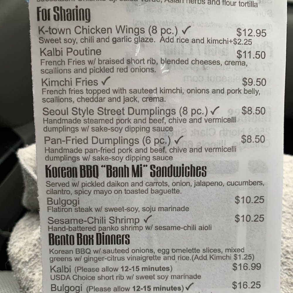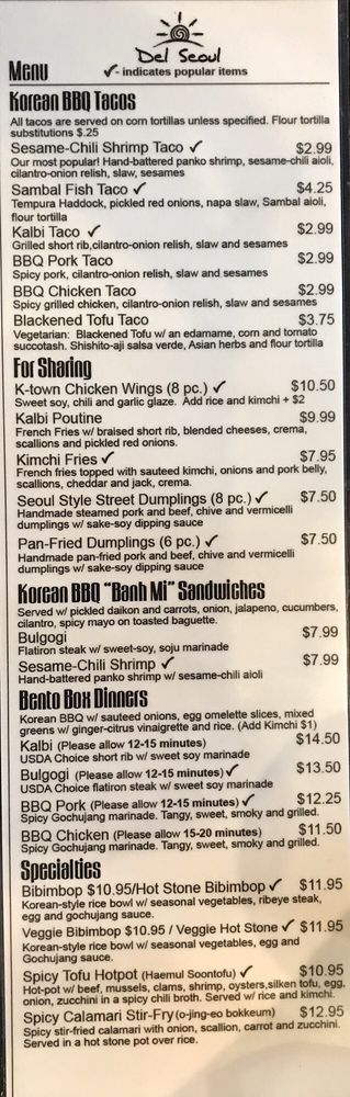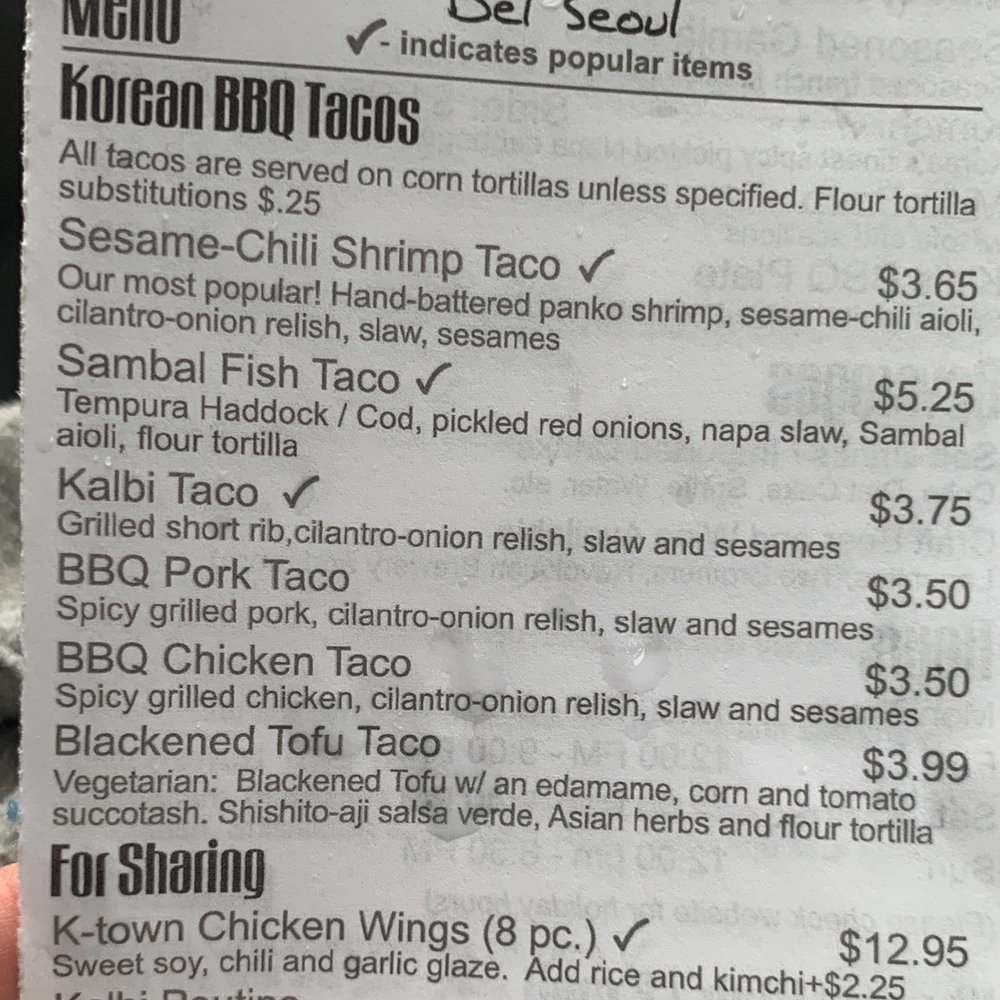 Del Seoul, located in Chicago, offers a unique twist on traditional tacos with a Korean flair. The menu includes a variety of options for pescatarians, vegans, and vegetarians, making it an inclusive choice for all diners. With features like delivery, takeout, reservations, and catering, Del Seoul provides flexibility in how customers can enjoy their meals. The restaurant also boasts amenities like outdoor seating, wheelchair accessibility, and happy hour specials. As an Asian-owned establishment, Del Seoul prioritizes sustainability by providing reusable tableware and allowing customers to bring their own containers. The diverse menu, accommodating options, and convenient services make Del Seoul a standout choice for a delicious dining experience with a fusion of flavors.